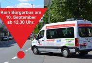Am Mittwoch, 10. September 2025, muss die Nachmittags-Tour des Bürgerbusses ab 12.30 Uhr leider ausfallen.